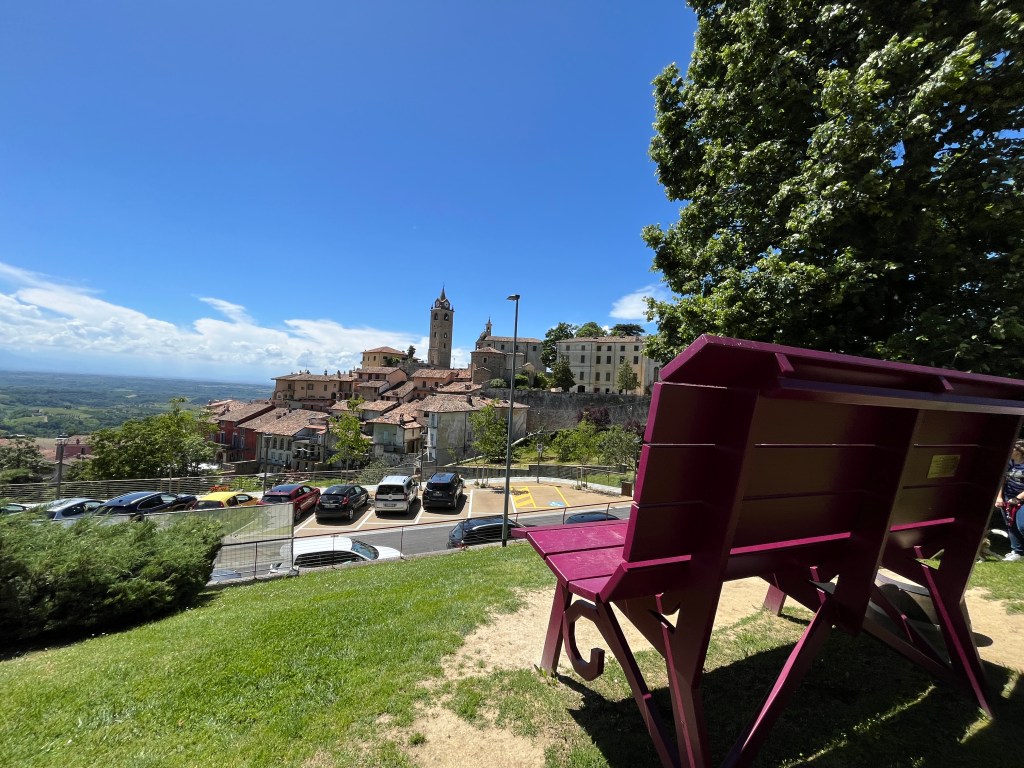 La panchina si trova poco fuori il centro di Neive, da cui si raggiunge in pochi minuti. La posizione non è delle migliori…