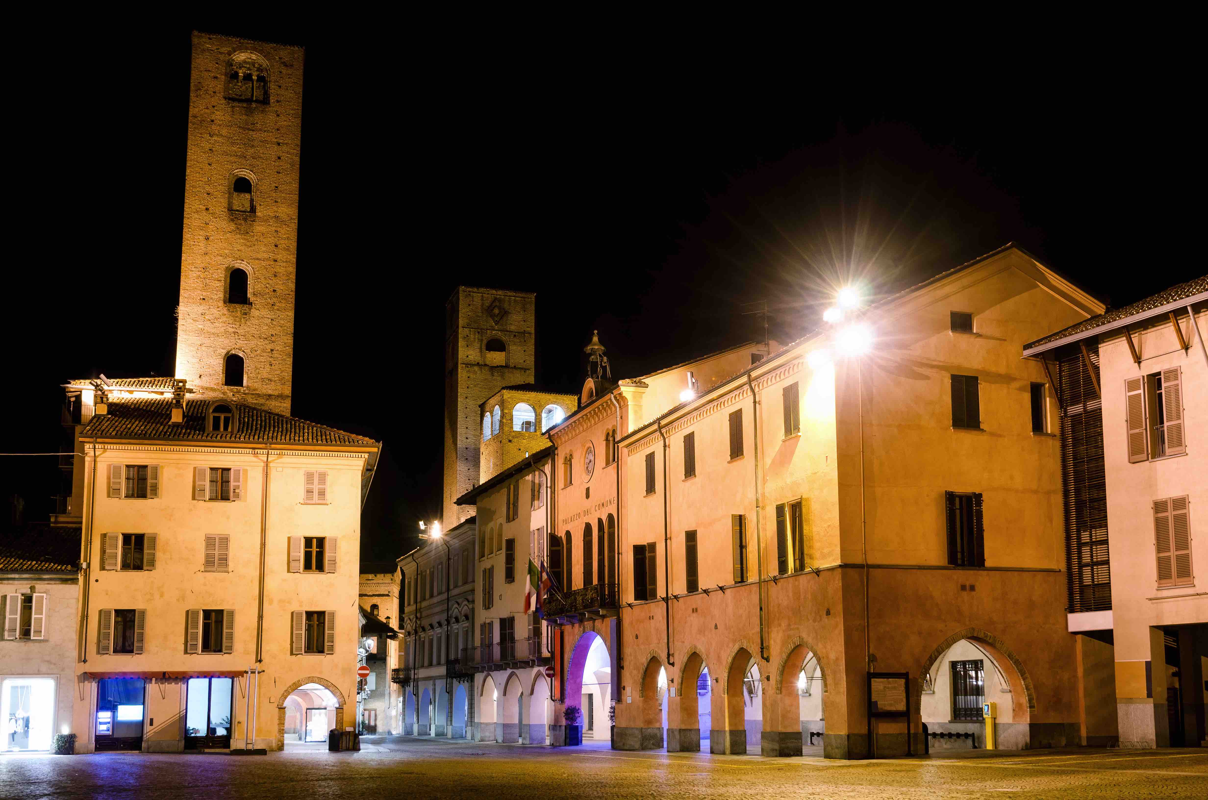 - Imboccando via Cavour, l’antico “Decumano” romano entrate nel centro storico con la vista della torri medioevali Artesiano e Sineo risalenti al 1300.