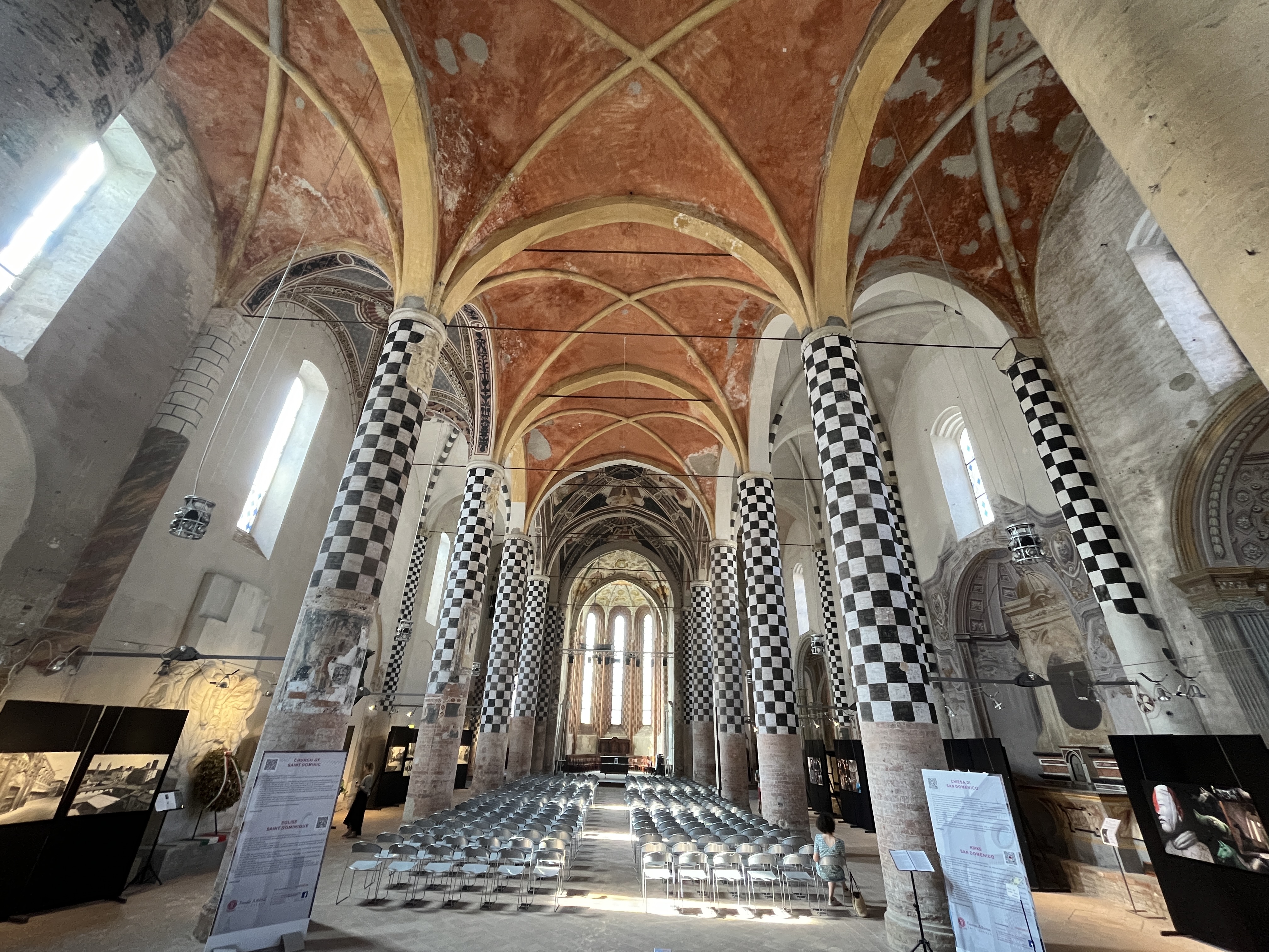 - Poco oltre, sull’altro lato della via, sorge il gioiello barocco di Alba, la Chiesa della Maddalena, opera di Bernardo Vittone della metà del ‘700; entrando troverete la tela che ritrae la Maddalena, in un ovale che sovrasta le colonne tortili dell’altare maggiore. Alle spalle, tra grandi scorci prospettici tipicamente barocchi, si apre il grande coro, vasto ambiente circondato da 48 scranni in noce e dalla volta interamente affrescata dove fa bella mostra un notevolissimo Cristo ligneo del 1400.