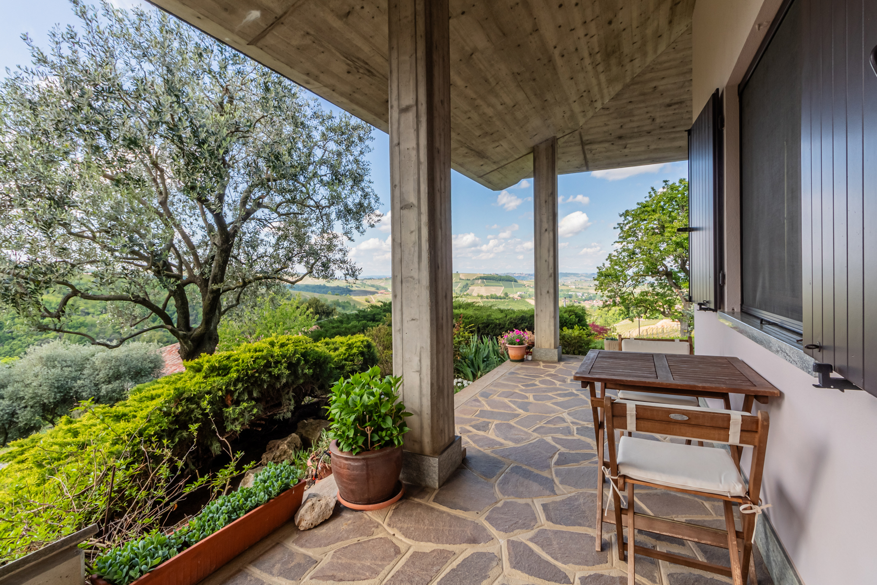L’ampio giardino circostante, confinante con i vigneti e un bosco, offre uno spazio rigenerante e tranquillo. Sotto il portico, troverete un grande tavolo dove poter pranzare immersi tra le vigne, godendo della vista panoramica del borgo di Neive.